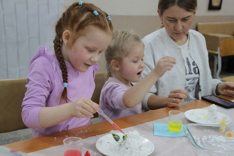 Под руководством опытных наставников ребята стали участниками захватывающих экспериментов, раскрывающих секреты природных явлений.Одним из ярких моментов стало создание собственного вулкана прямо из настоящего снега; дети смешивали соду и пену для бритья, наблюдая за бурлящей реакцией, превращающей обычную смесь в живописный снеговой конус.