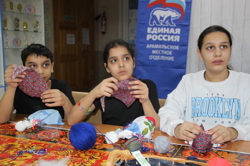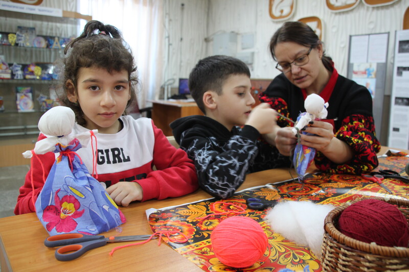 Семьи дружно собрались вместе, чтобы научиться искусству изготовления народной игрушки. Все дети и взрослые были вовлечены в творческий процесс, ведь создание такой куклы является настоящим ритуалом, передающимся от поколения к поколению.