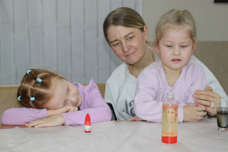 Следующим этапом эксперимента стала демонстрация свойств масла и воды. Смешивая жидкости разных плотностей, дети узнали много интересного о взаимодействии веществ и создали собственные необычные картины.Особое внимание было уделено созданию искусственного снега, который, казалось бы, невозможно отличить от настоящего.