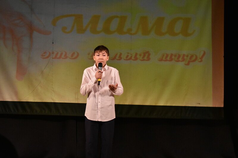 Стихи от театральной студии «Т-Игра» читал Зорькин Степан, а на фоне звучал видеопоказ с фотографиями мам. Участники концерта со сцены вручали цветы своим мамам в знак благодарности и любви, создавая атмосферу тепла и уюта.