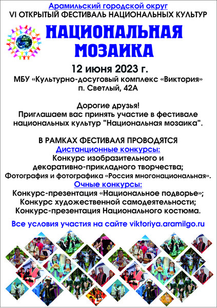 Приглашаем вас принять участие в фестивале национальных культур "Национальная мозаика" в Арамильском городском округе.