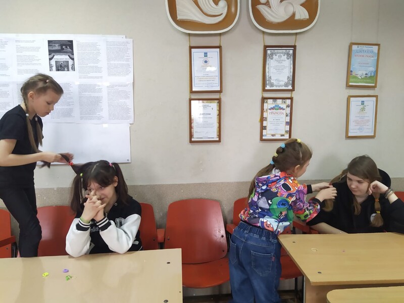 Девочки рисовали закрытыми глазами открытки, заплетали друг другу косички и угадывали, что лежит в маминой сумочке.