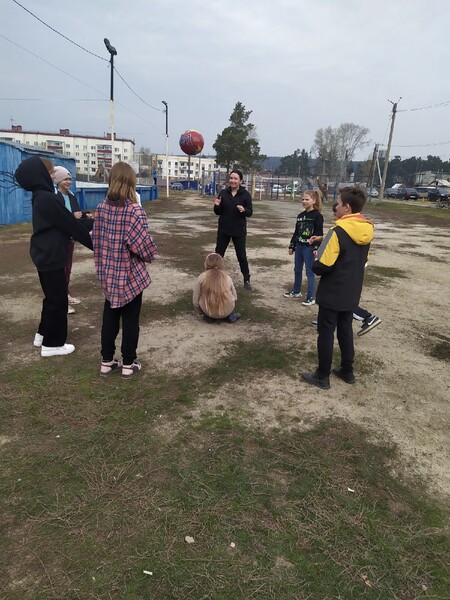 Ребятишки, вместе с ведущей Жанной Гильмеяновой, с удовольствием играли в "Цепи кованные", "Вышибалы", "Тише едешь, дальше будешь.Стоп!", "Пионербол", "Светофор", "Одиннадцать", "Арам шим шим".