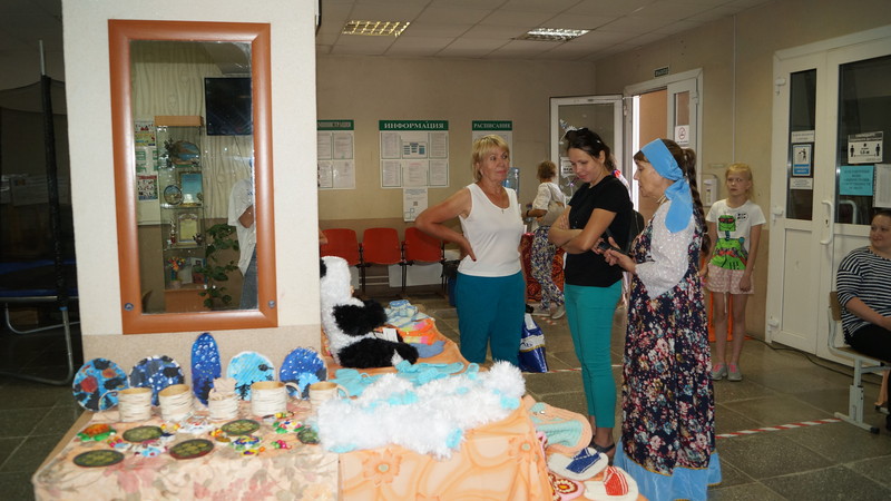 В фойе учреждения гости праздника могли наблюдать выставки и работы жителей нашего поселка.