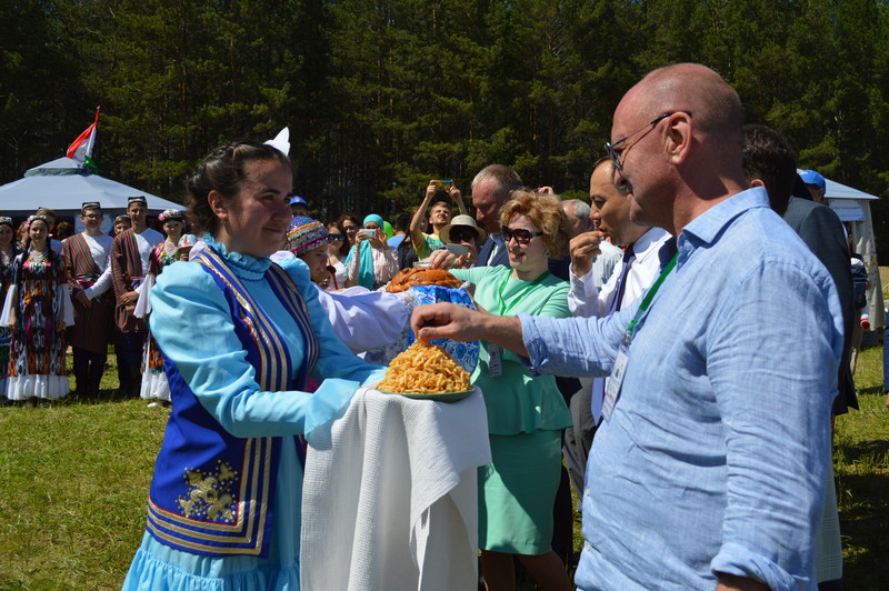Встречать почетных гостей: Вице-губернатора Свердловской области Азата Салихова, представителей органов власти Башкортостана и Татарстана вышли все с нашего подворья. Гостям нашего подворья мы хотели показать, что на территории Арамильского городского округа на протяжении многих десятилетий живут представители самых разных национальностей и народностей, уважая обычаи и традиции соседей. Поэтому в качестве угощения предоставили и чак-чак, и хлеб с солью.