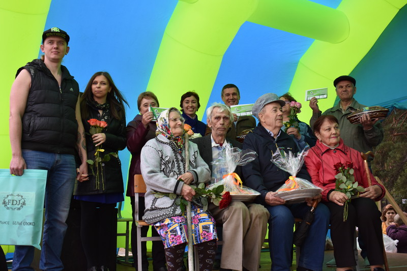А молодоженов выявлена всего одна пара: Чебунины Юлия Александровна и Александр Вячеславович, которым вручили комплект постельного белья. Юбиляров пригласили на сцену, где их встречали русскими обычаями, и преподнесли чашу, как залог изобилия в доме.