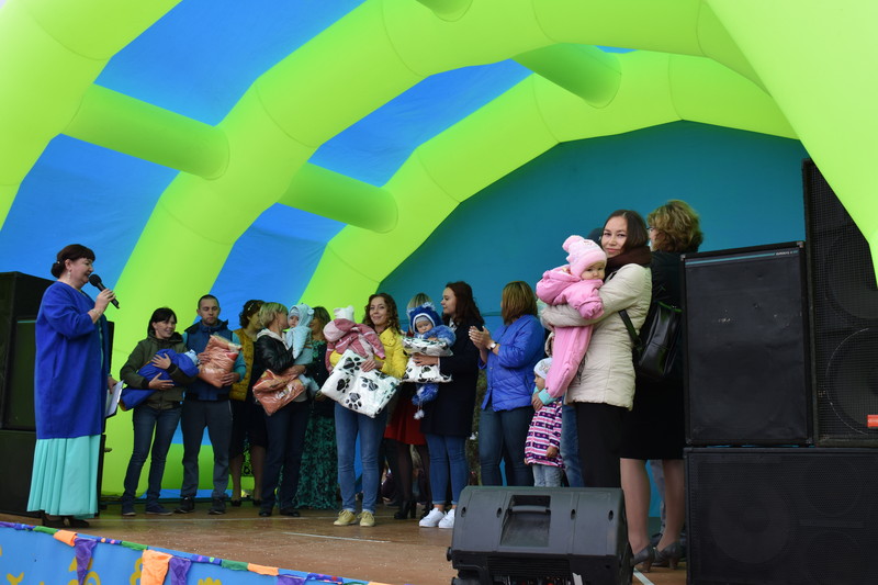 Так же без внимания не оставили новорожденных нынешнего года. Для чествования мы пригласили молодых родителей с детьми накануне праздника, раздавая пригласительные. Каждый родитель представились и представили новых жителей нашего поселка. Им подарили теплые пледы.