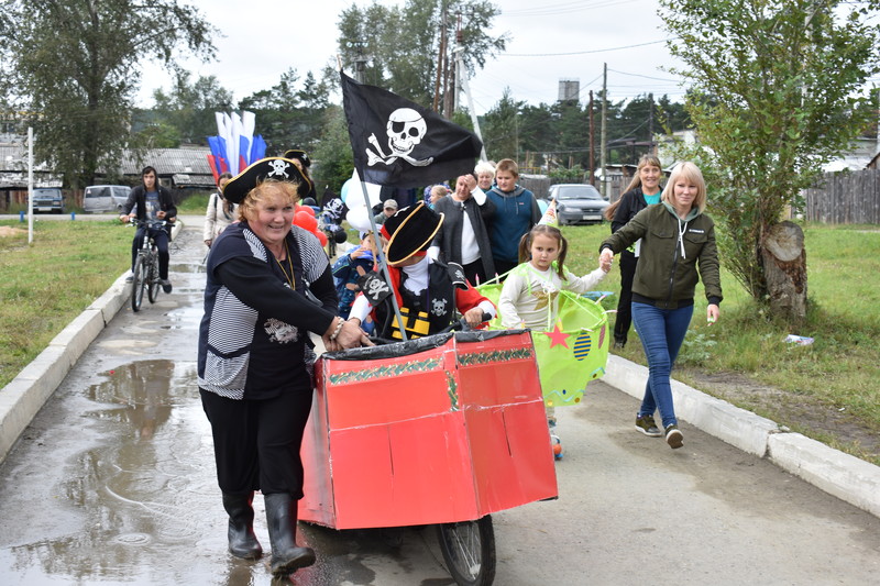 Интересным и зрелищным получился конкурс-парад «Оригинальное детское транспортное средство». Хотя участников было немного, но транспорт был представлен замечательный! Красочно были представлены сразу три «морских судна»: «Гроза морей», «Капитан Матвей», «Юнга морячок». И еще был «Праздничный торт» на роликах и «Ягодка малина». Колонну транспорта сопровождал «сотрудник ДПС». Участники прошли круг почета. Зрители выбирали победителя аплодисментами, но без подарков не остался никто. Все были одарены призами и аплодисментами.