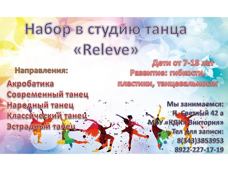 Объявляется набор в студию танца "Releve" .